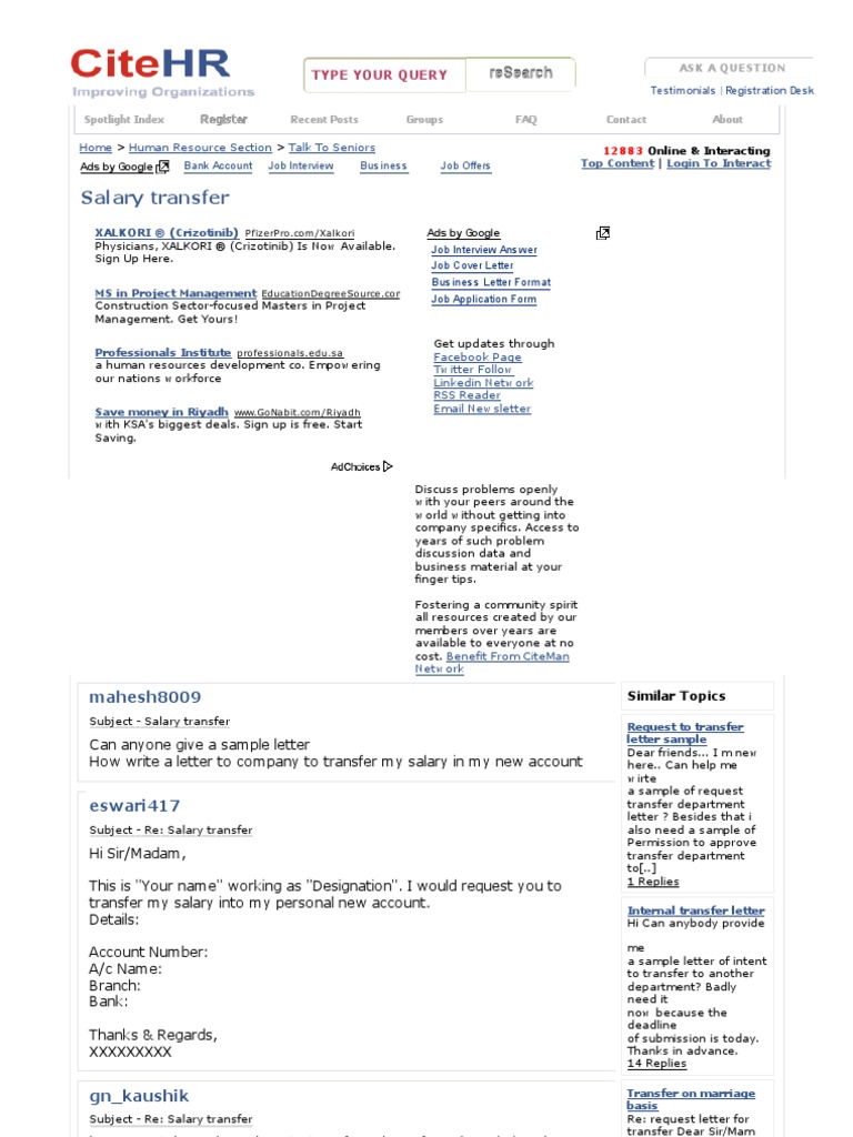 Salary Transfer Letter Format Sample Request Letters